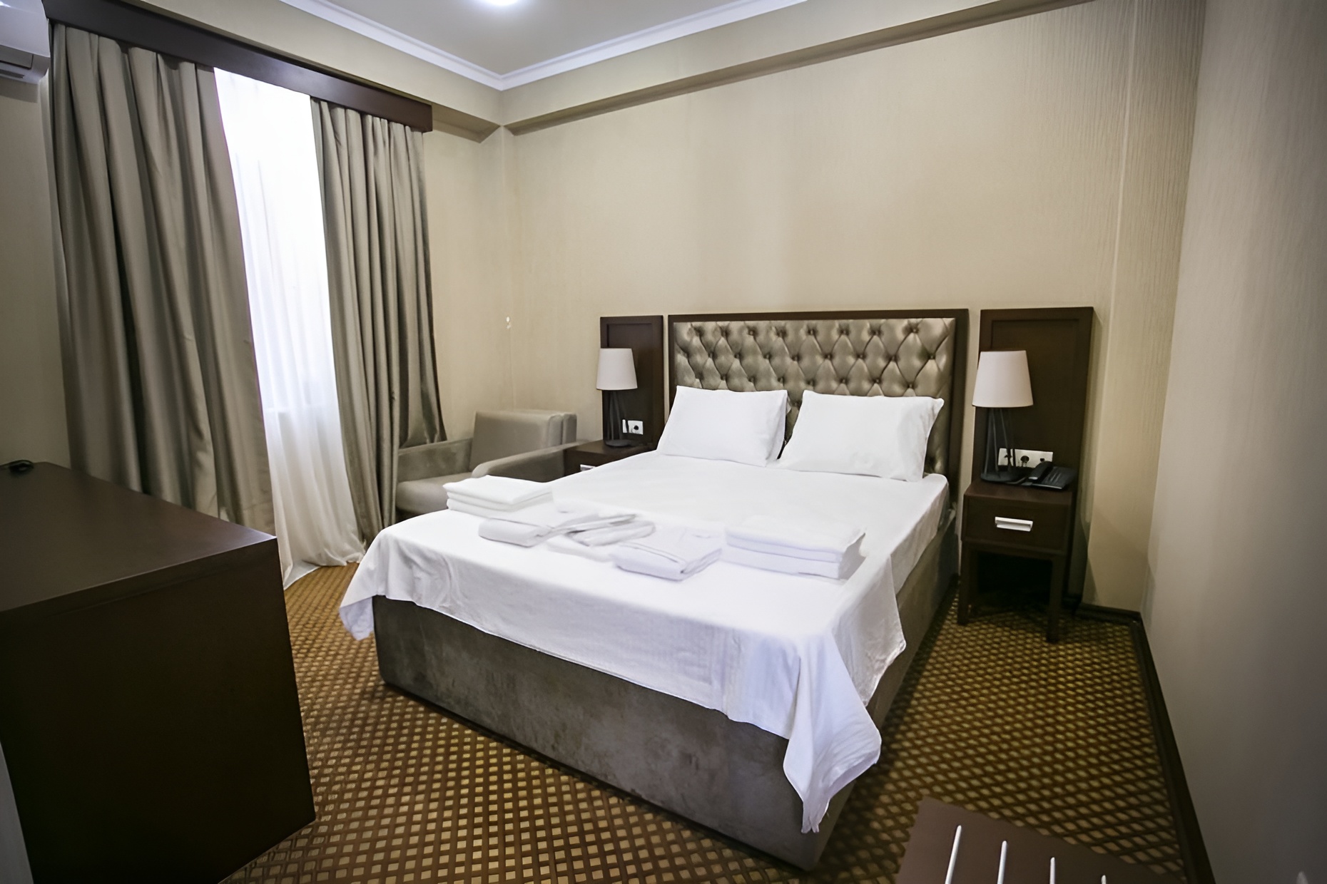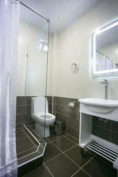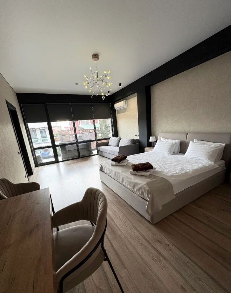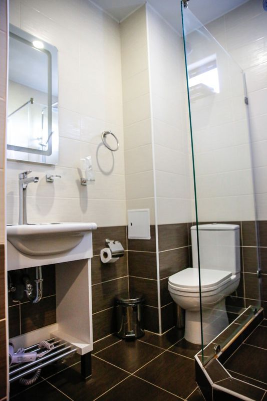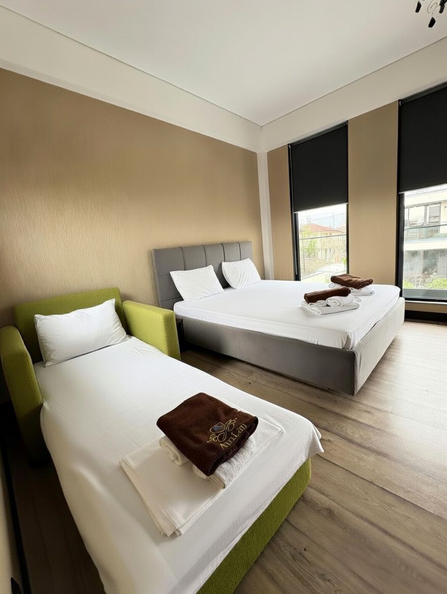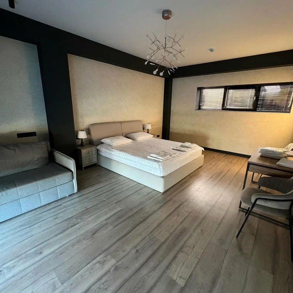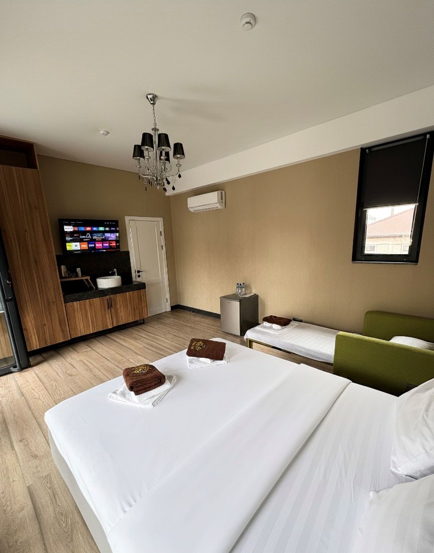 Город Сухум в это время года нам очень не понравился и мы почти уехали из него, но в последний момент решили переночевать, выбор пал на данный отель. Он нас поразил и приятно удивил. Для начало стоимость номера в 4-звездочном отеле (2210₽), во вторых На грустной серой улице стоял хорошо отремонтированный дом, высокий, красивый, встретили нас двое мужчин (нас это немного смутило), но все остальное было очень даже на высоте. Мужчины оказались сотрудниками (администратор и охранник), были очень вежливы и обходительны. Заселили нас быстро, рассчитали с помощью карты (что редкость для здешних мест), угостили вином и фруктами, отвечали на наши вопросы, поддерживали беседу, мы были приятно удивлены. Теперь об отеле. Очень и очень хорошего (прекрасного) уровня отель, почти соответствует заявленным 4 звёздам. Есть не большие недочеты, но только потому что отель ещё достраивается (3 и 4 этажи ещё не запустили). Просторный холл, коридоры и лестница сделаны очень достойно. Материалы хорошо подобраны, чувствуется рука дизайнера. Номера очень чистые и прекрасно оформлены, выдержаны в едином стиле, выглядят дорого и богато. Шикарно подобранна цветовая гамма отделки, текстиля, мебели. Шторы вообще огонь, хорошая современная бытовая техника, современный санузел, в номере есть все необходимое. Кондиционер, обогреватель, чайные принадлежности, мини-бар, телевизор, Wi-Fi, шикарный матрас, дополнительные подушки и одеяло, белоснежное белье, халаты. Добавим ложку дёгтя в эту бочку с мёдом. В номерах нет бесплатной, бутилированной воды. И для отеля такого уровня экономить на туалетной бумаге не допустимо (однослойная и дешевая). Подводя итог можно сказать. Этот отель очень достойный представитель отельного фонда города Сухум. Рекомендую к посещению, отличное соотношение цены и качества. Хочется сказать собственникам большое спасибо, за место (созданное ими) которое дарит радость.