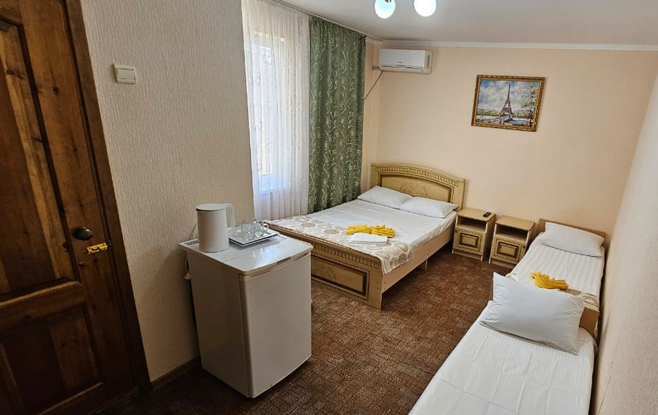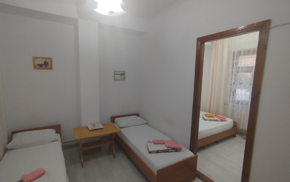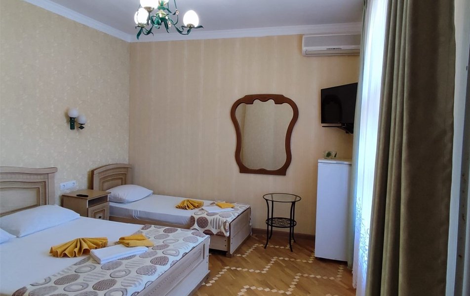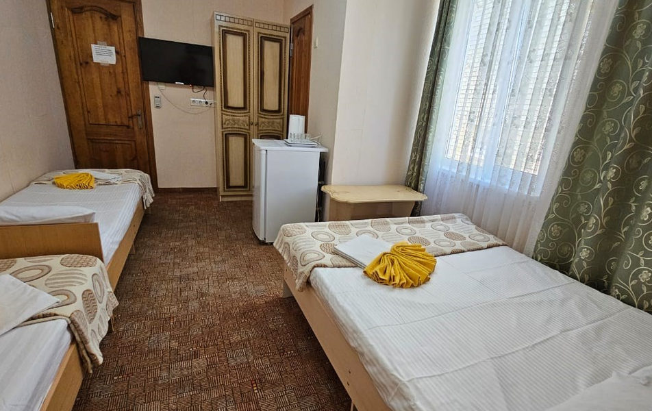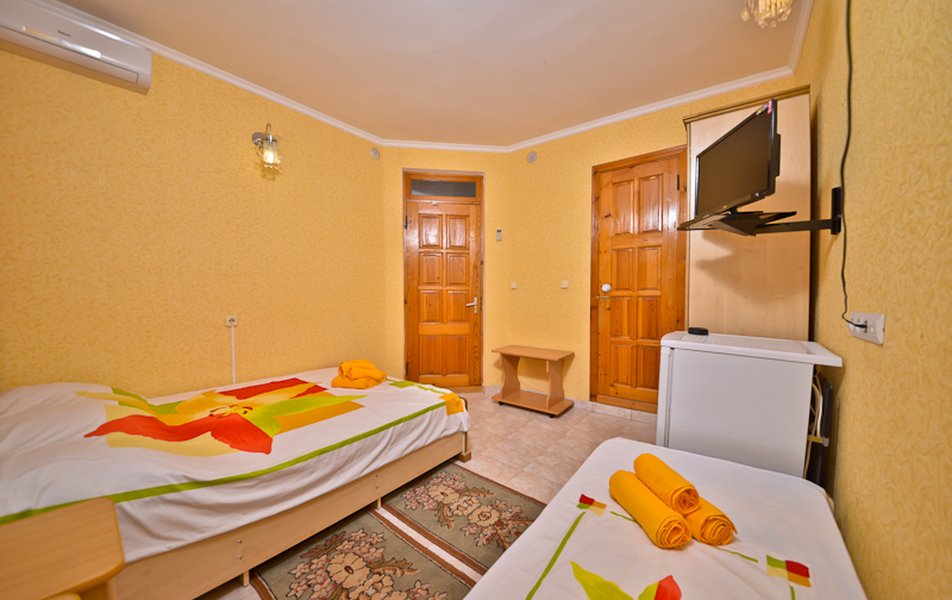 Бюджет 2-местный Количество комнат: 1-комнатный Тип номера: Эконом Кол-во основных мест: 2 Площадь (кв. м): 12 Мебель: кровати односпальные /одна двуспальная кровать, прикроватные тумбочки, столик журнальный, шкаф Оборудование: мини-холодильник, набор посуды, сплит-система, телевизор Санузел: с душем Сервис: Wi-Fi бесплатно, смена полотенец, смена постельного белья, уборка номера