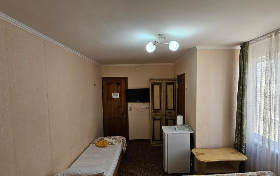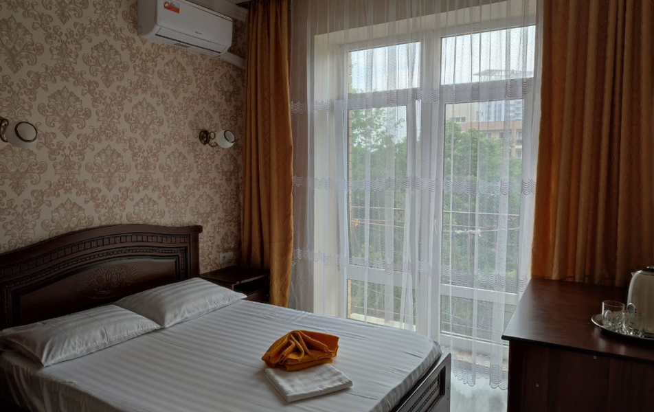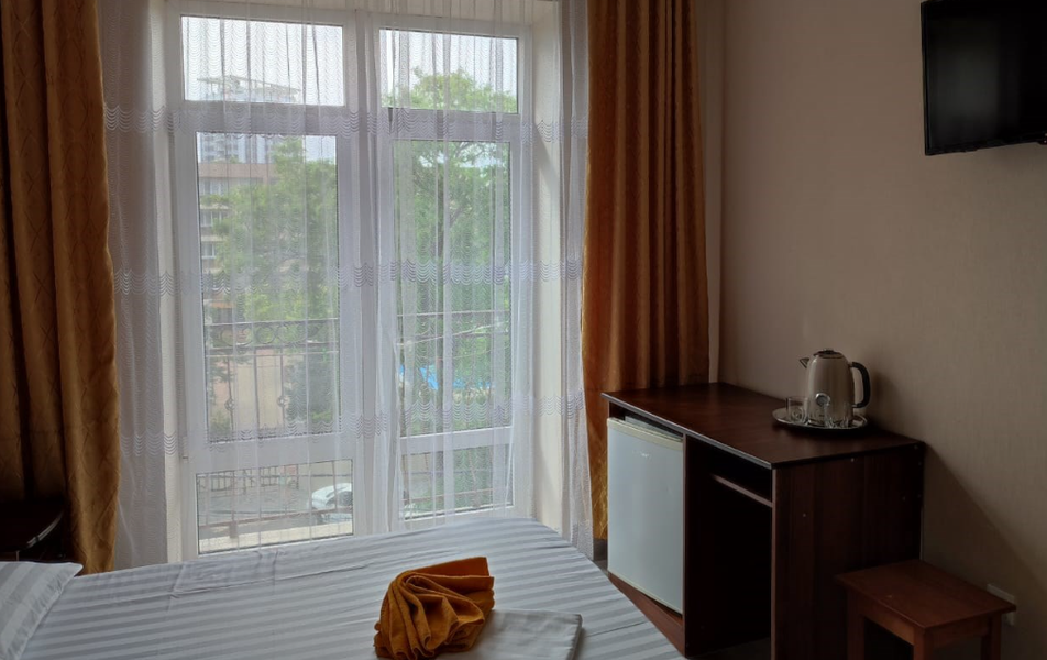 Номер 2-местный (с балконом) Количество комнат: 1-комнатный Тип номера: Эконом Кол-во основных мест: 2 Мебель: кровати односпальные /одна двуспальная кровать, прикроватные тумбочки, столик журнальный, шкаф Оборудование: мини-холодильник, набор посуды, сплит-система, телевизор Санузел: с душем Сервис: Wi-Fi бесплатно, смена полотенец, смена постельного белья, уборка номера