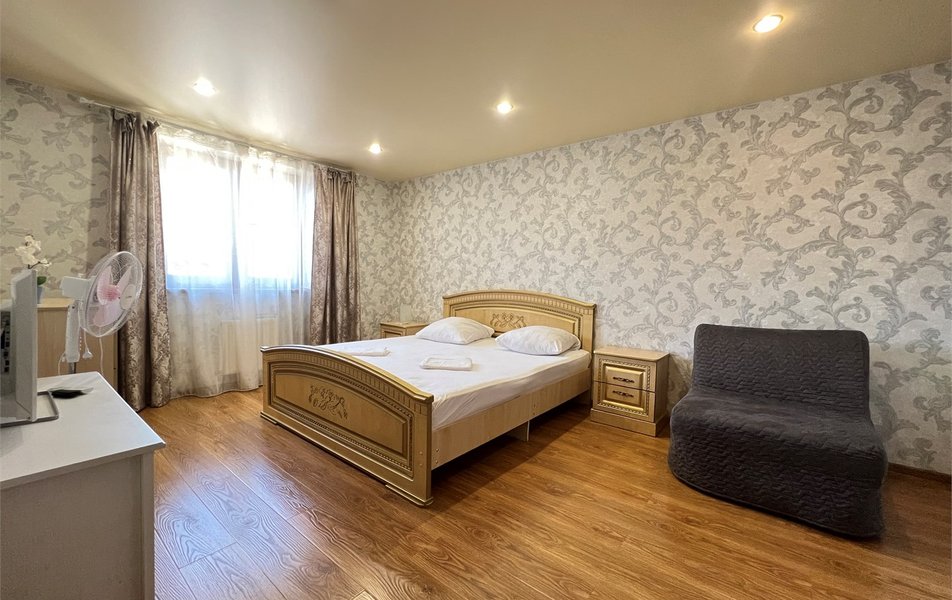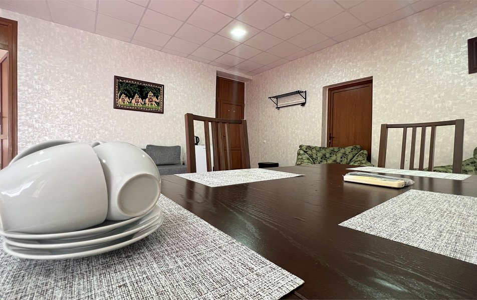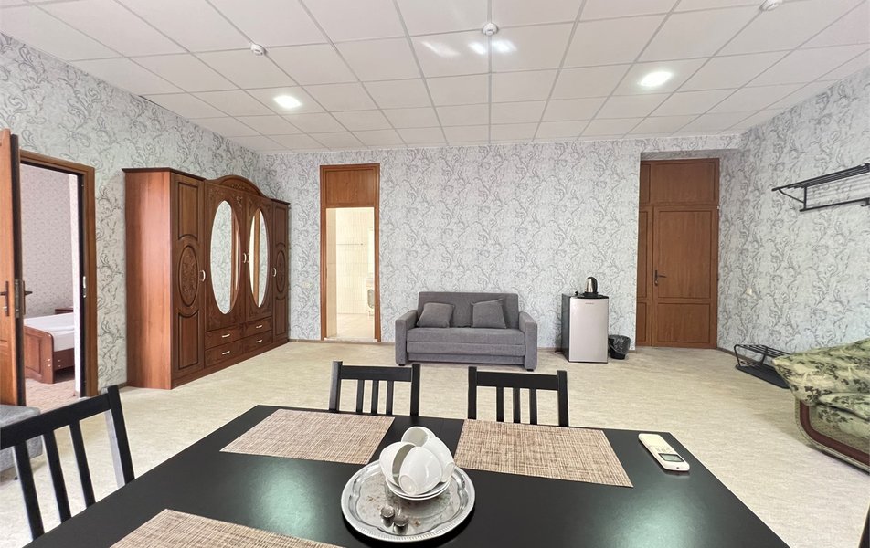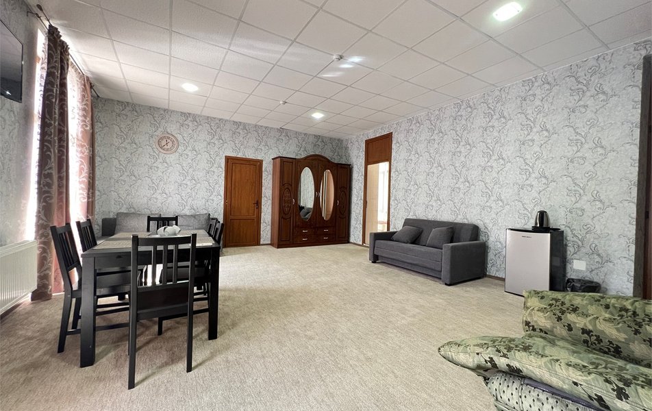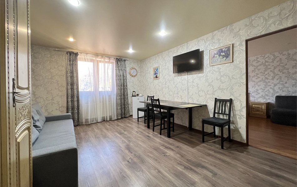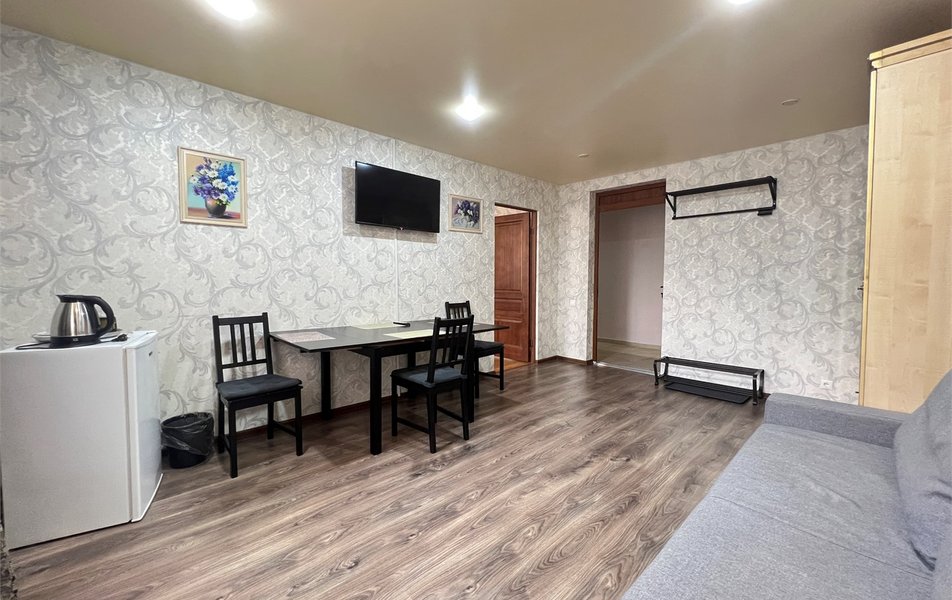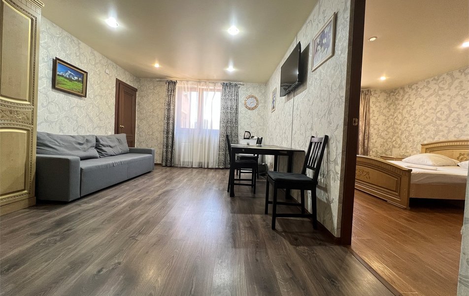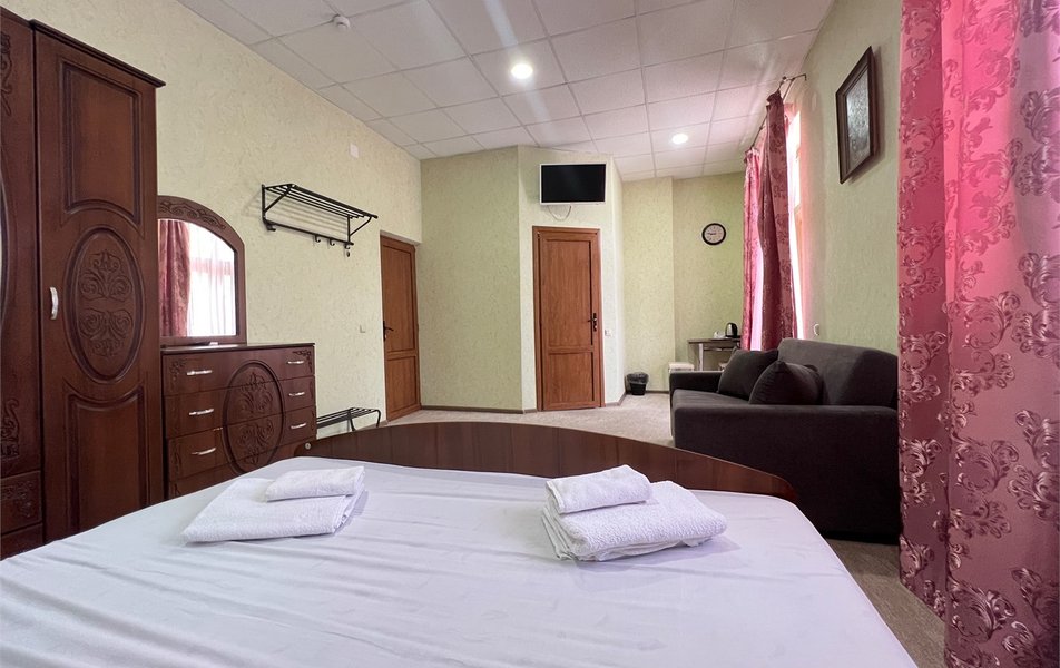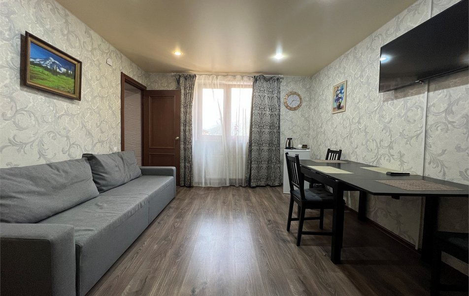 Жили на пятом этаже в двухкомнатном номере. Номер теплый, чистый и довольно уютный. Для хранения одежды - большой шкаф и вешалка. За 7 дней, что жили там, один раз была уборка в номере со сменой полотенец. Все наши просьбы (нехватку полотенец, вынос мусора) администратор быстро решал, также посоветовал, где можно завтракать, за что большое спасибо. Единственным существенным минусом для нас было то, что лестницы довольно крутые и подниматься с горнолыжными ботинками на пятый этаж было тяжеловато.