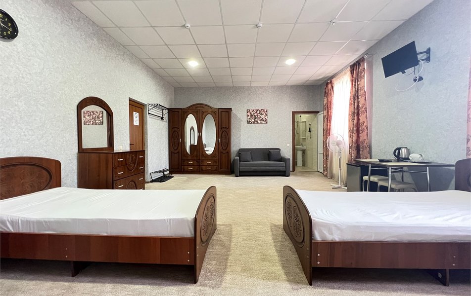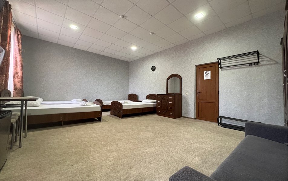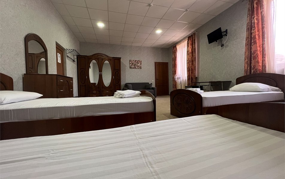 Ужасный отель. Из плюсов только месторасположение, всё остальное сплошные минусы. Номер реальное стойло для скота. Нет даже шкафа для одежды и зеркала. Кровати сделаны из щепок, с изголовьем упирающимся в батарею центрального отопления. Спать не возможно. На троих два стула. С математикой у них видимо проблема.Душ и туалет в коридоре общего пользования.Как они прошли проверки Роспотребнадзора можно только догадываться! Бронировали через букинг, фотографии были совсем другие. И за такую прелесть они берут 10тысяч за сутки!!! Когда Мы сказали что сьезжаем , деньги вернуть отказались. Шарашкина контора, одним словом!