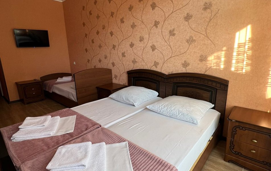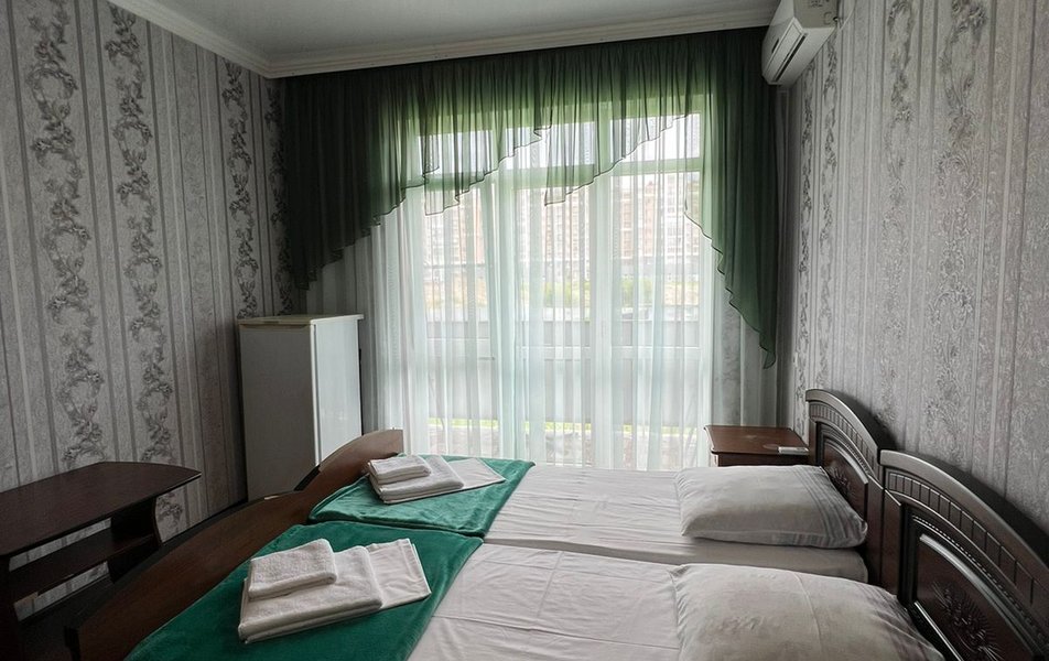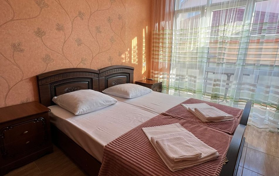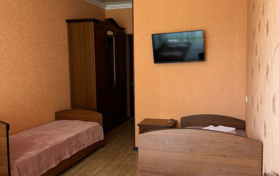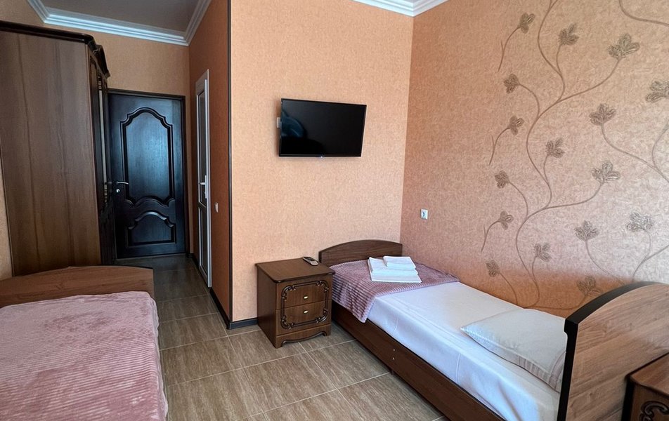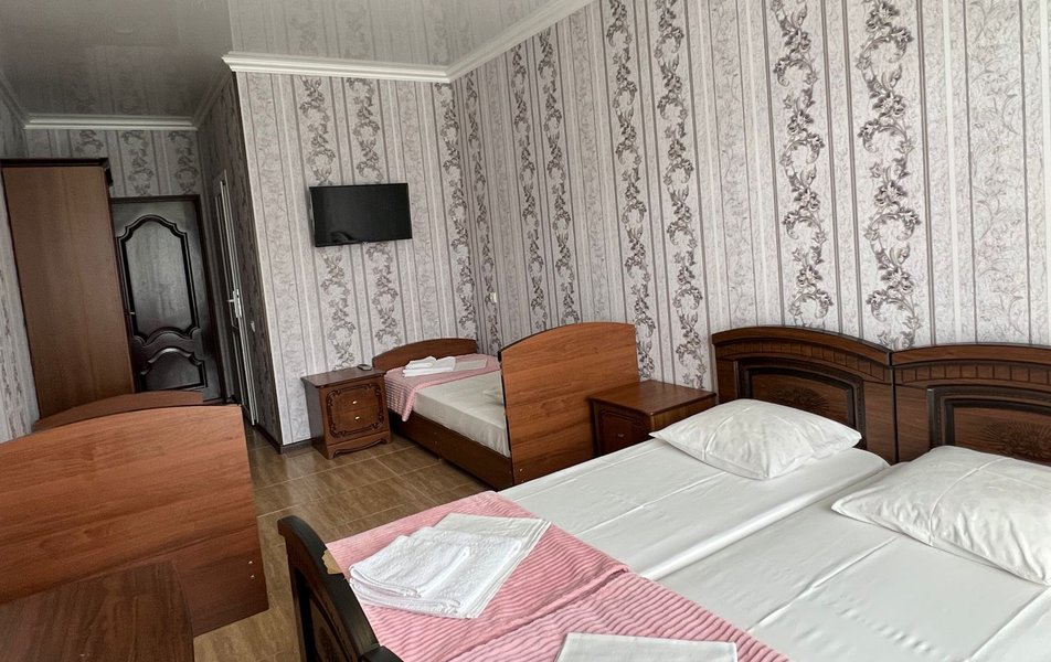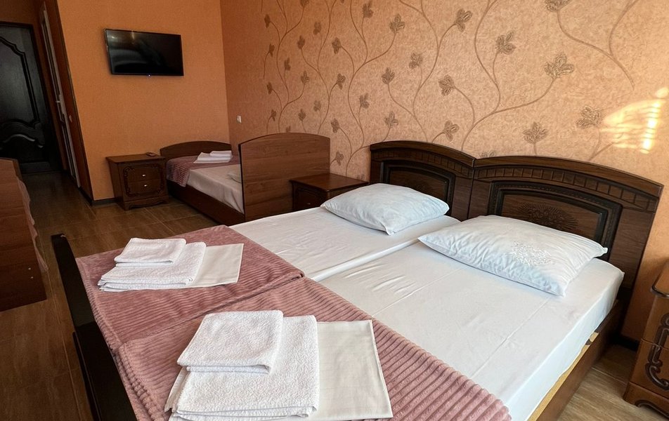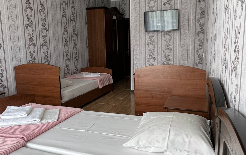 Стандартный 4-местный (DBL) Количество комнат: 1-комнатный Тип номера: Стандартный Вид из номера: на горы Кол-во номеров: 1 Кол-во основных мест: 4 Площадь (кв. м): 20 Мебель: зеркало, кровати односпальные, кровать двуспальная, прикроватные тумбочки, стол, стулья, шкаф Оборудование: кондиционер, мини-холодильник, телевизор Санузел: с душем Сервис: Wi-Fi бесплатно, смена постельного белья: 1 раз в 7 дней, уборка номера: 1 раз в 2 дня