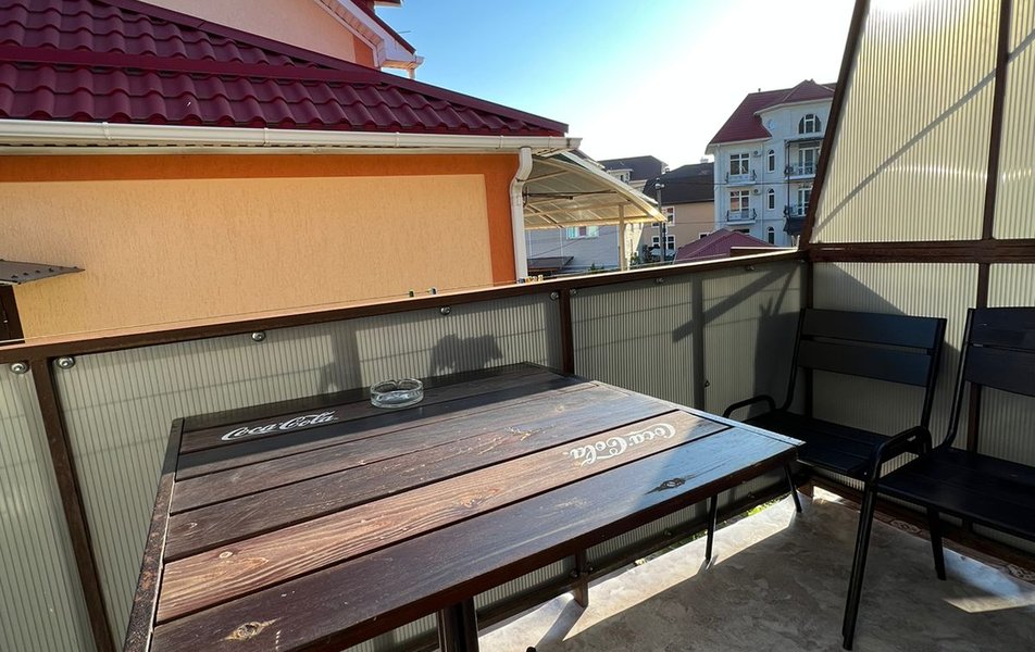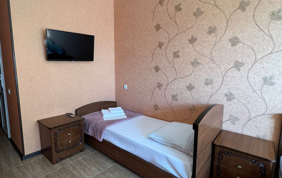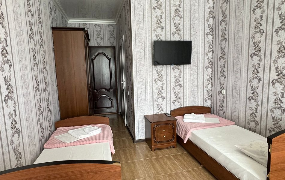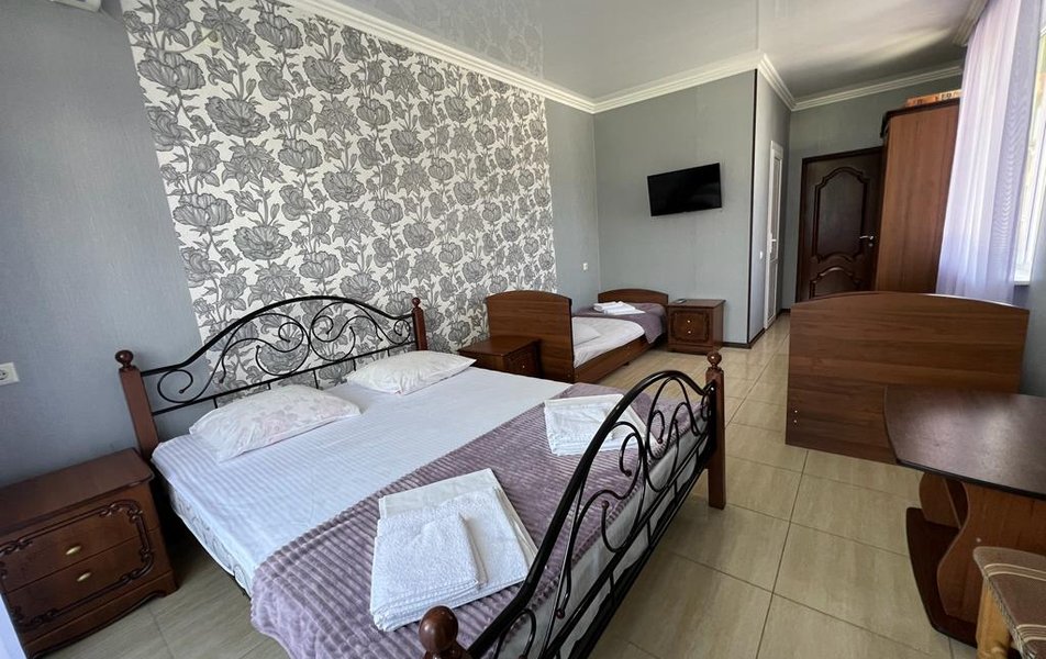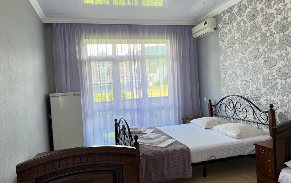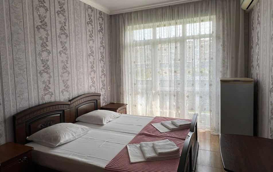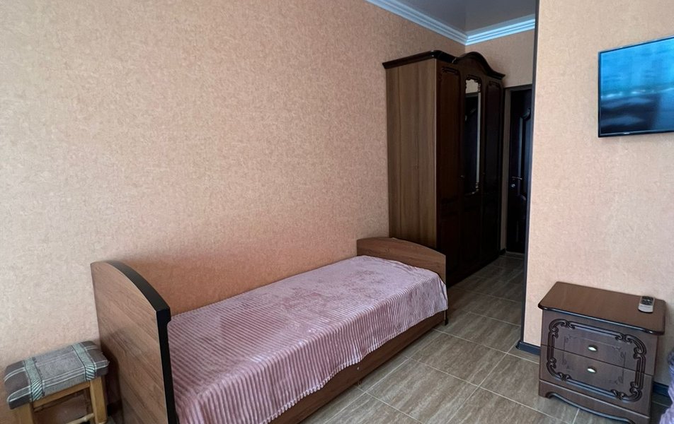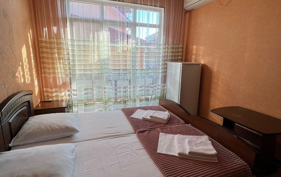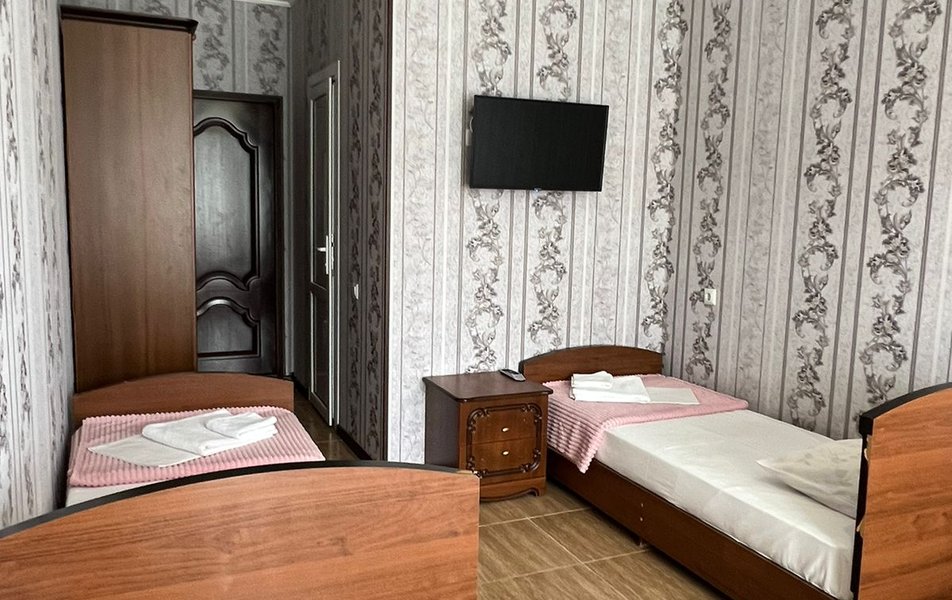 Стандартный 4-местный (DBL) Количество комнат: 1-комнатный Тип номера: Стандартный Вид из номера: на горы Кол-во номеров: 1 Кол-во основных мест: 4 Площадь (кв. м): 20 Мебель: зеркало, кровати односпальные, кровать двуспальная, прикроватные тумбочки, стол, стулья, шкаф Оборудование: кондиционер, мини-холодильник, телевизор Санузел: с душем Сервис: Wi-Fi бесплатно, смена постельного белья: 1 раз в 7 дней, уборка номера: 1 раз в 2 дня
