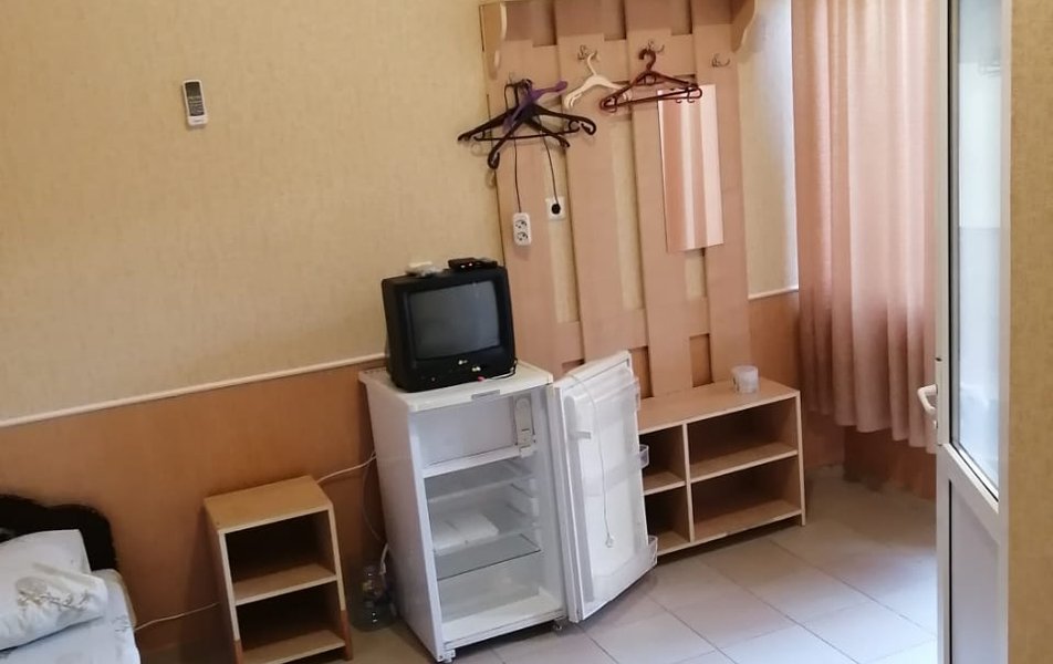 Стандартный 2-местный Количество комнат: 1-комнатный Тип номера: Стандартный Вид из номера: на двор Кол-во номеров: 18 Кол-во основных мест: 2 Площадь (кв. м): 12 Балкон общий: с мебелью Мебель: зеркало, кровати односпальные, прикроватные тумбочки, шкаф Оборудование: кондиционер, телевизор, холодильник Санузел: с душем (поддон) Сервис: Wi-Fi бесплатно, смена полотенец: 1 раз в 3 дня или по запросу, смена постельного белья: 1 раз в 5 дней, уборка номера: 1 раз в 5 дней