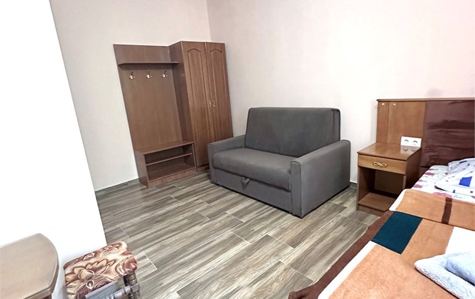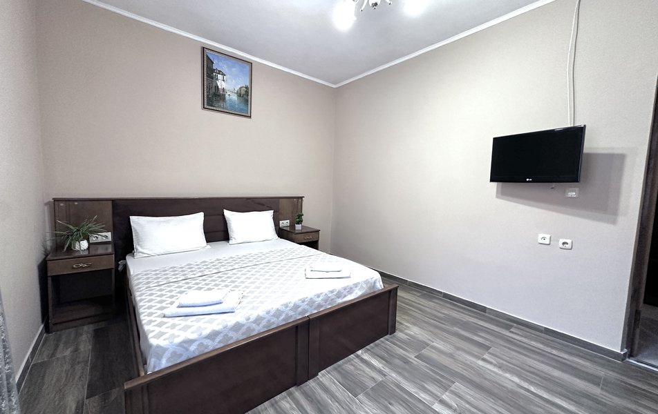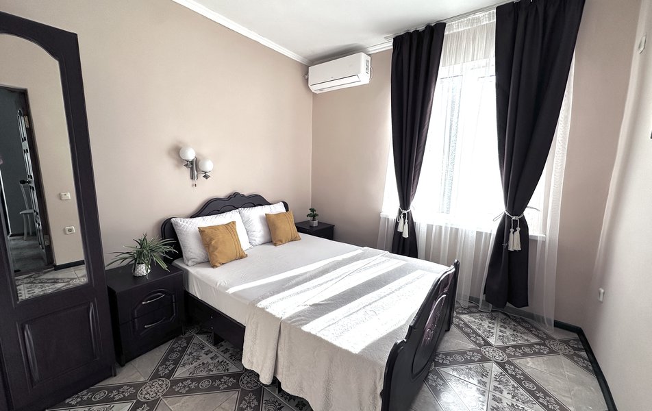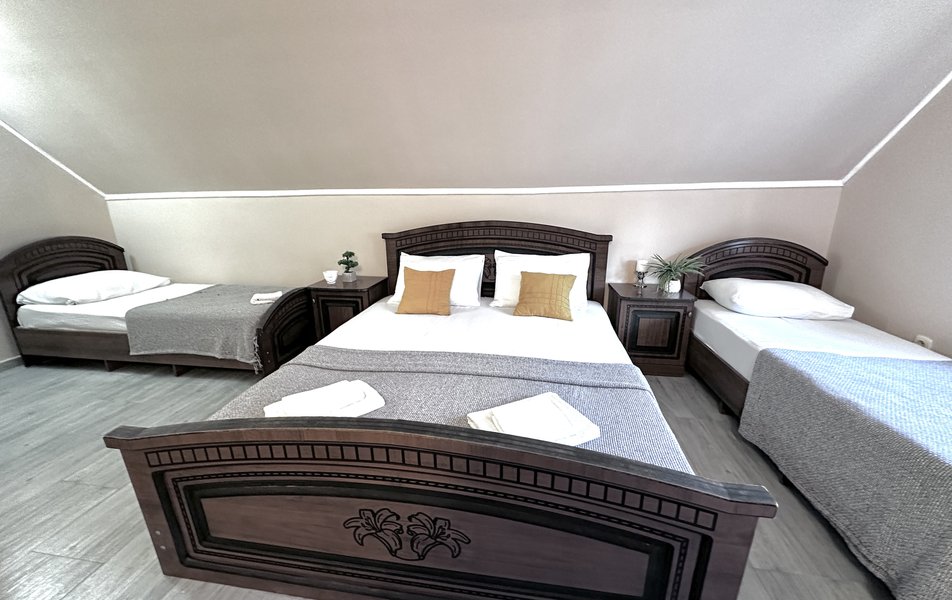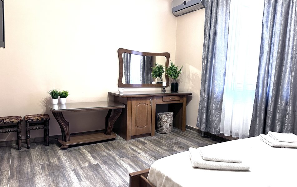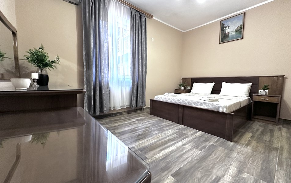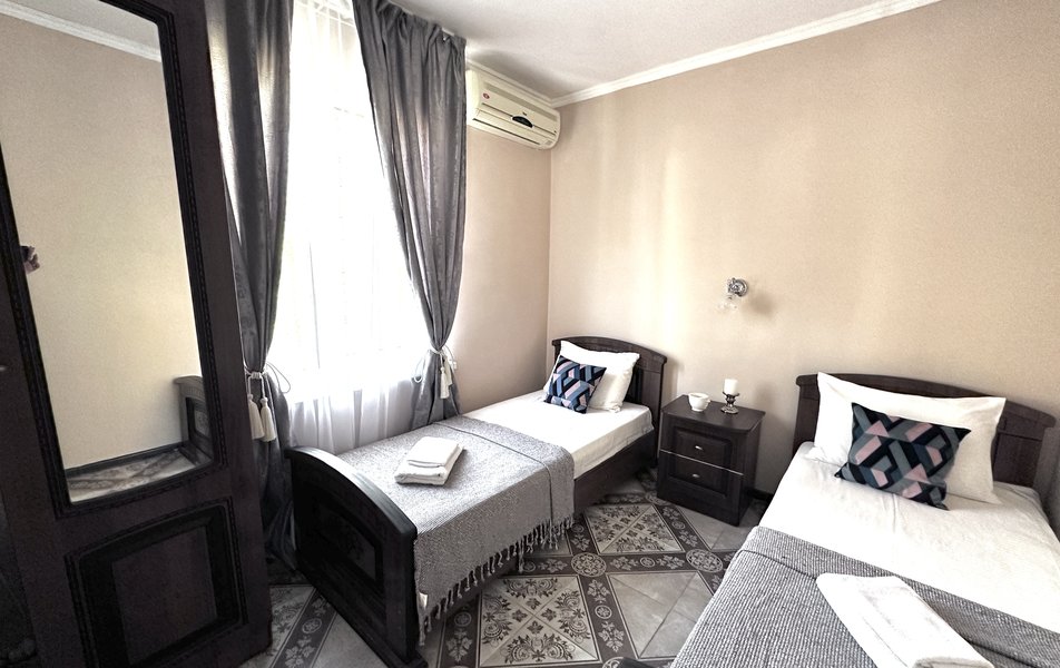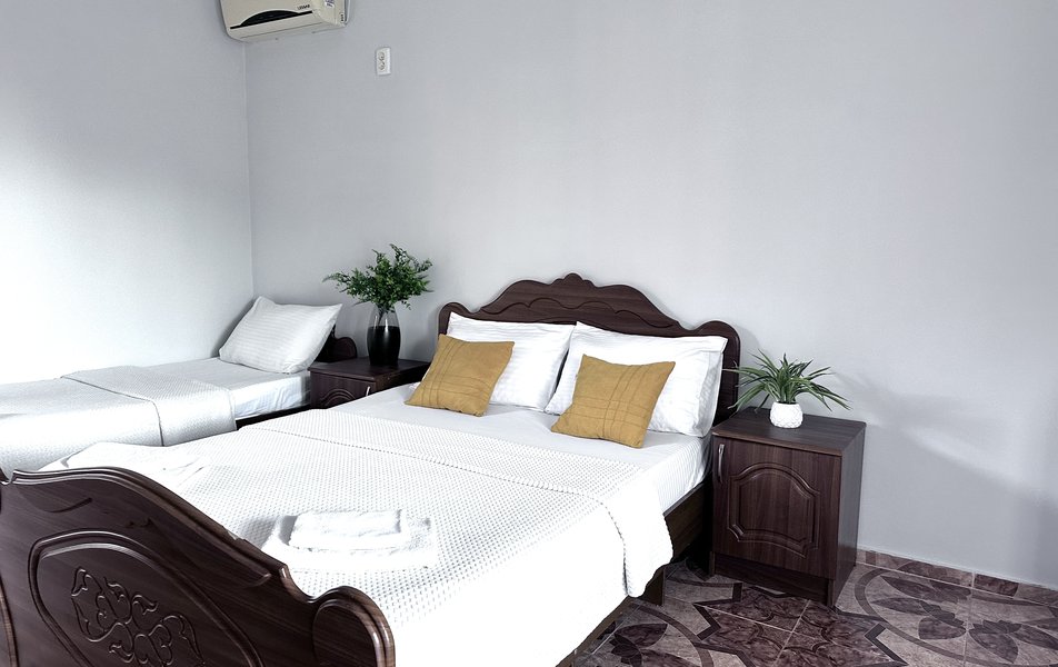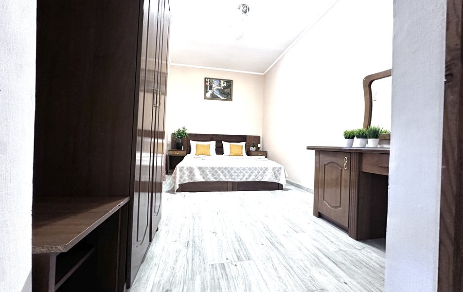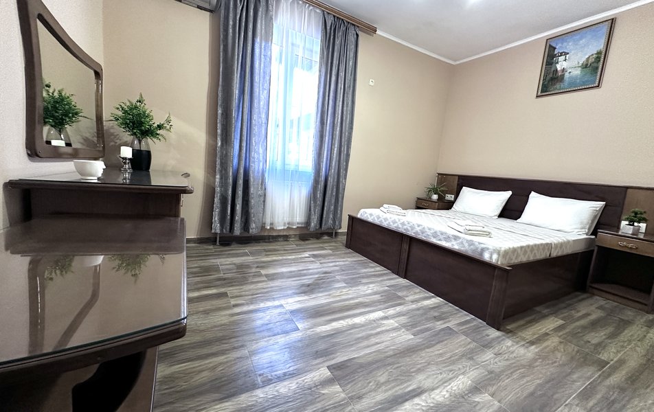 Отдыхали 2 взрослых и 2 ребёнка, на 7 ночей. Бронировали номер в коттедже, кажется семейный. Администратор приветливая и вежливая девушка. Номер просторный: при входе холл большой, стоит стол и 4 стула, так же холодильник с морозильной камерой. Далее две комнаты. В детской шкаф без полок, поэтому он был просто бесполезный. Повесить на 5 вешалок все детские вещи невозможно, поэтому шкафом в детской пользоваться не смогли. Так же есть собственный балкон, стол и два стула. В каждой комнате по телевизору, но показывает всего 3 канала, поэтому пользоваться ими к сожалению не удалось. Ремонт, конечно, старый. Прям вернулись в начало 2000ых. Свет в комнате не работал, пользовались ночником, он яркий и спасал ситуацию. Комнаты предполагалась закрывались на замки и были даже ключи от двух комнат, но по факту замки не работают. Кстати ключ от номера у нас забрала женщина в первый же день приезда, сделать копию для персонала и до конца отдыха не вернули, то есть в наше отсутствие наше жильё всегда было открыто. И самое ужасное, что во время отъезда с нас спрашивали эти ключи и НЕ верили нам, что кто-то из сотрудников забрал у нас, чтобы копию сделать, т.к. до этого их кто-то потерял. Обязательно берите с собой туалетку, мыло, половую тряпку, средство для мытья посуды, если планируете готовить и питаться самостоятельно. За неделю не меняли бельё, полотенца и не убирались. Далее по территории: она маленькая, но всё в зелени - это радует. Есть бассейн, но он холодный и глубокий. До моря минут 10-15 кто как ходит) нас не напрягала дорога. Кстати, на территории висит реклама экскурсий, ни в коем случае не берите там, нас обманули!!! Обещали поездку на 33 водопада чайные плантации купание в горной реке. По факту возили по дегустациям каньон прохладный, то есть вместо 3ех локаций отвезли только в одну! Когда мы написали этому Артёму, почему мы бронировали одну экскурсию, а получили совершенно другую, он ответил "уточню" и просто пропал. Это мошенники! Не знаю как они могли у себя на территории отеля повесить рекламу людей, которые обманывают туристов!