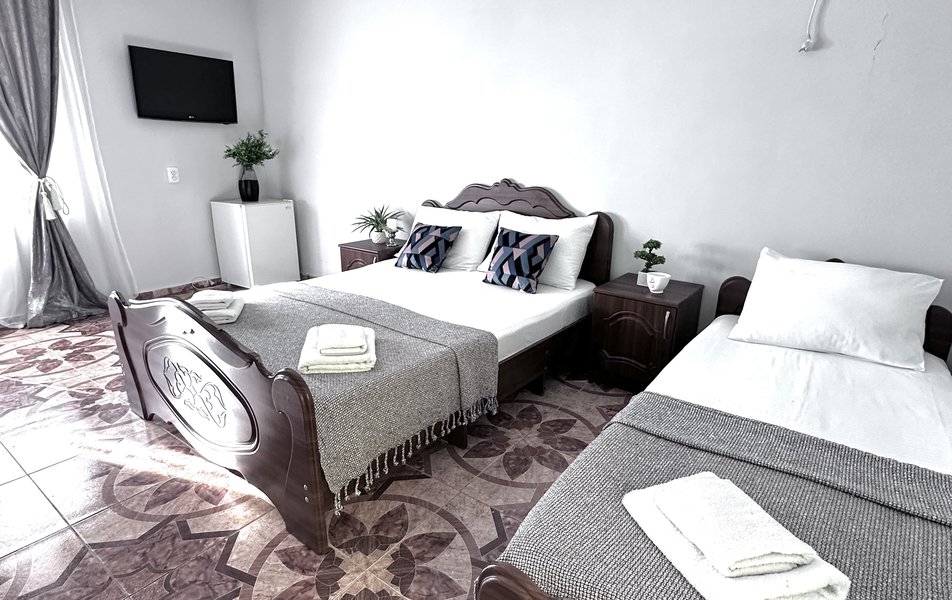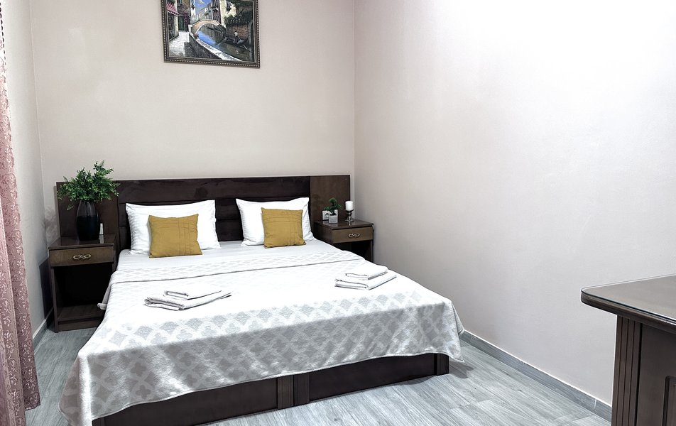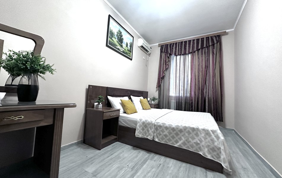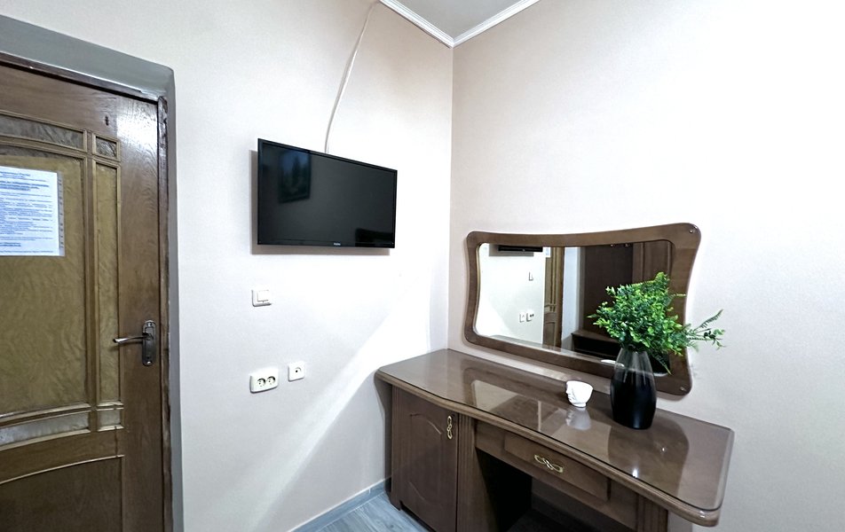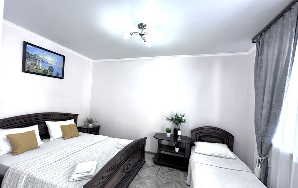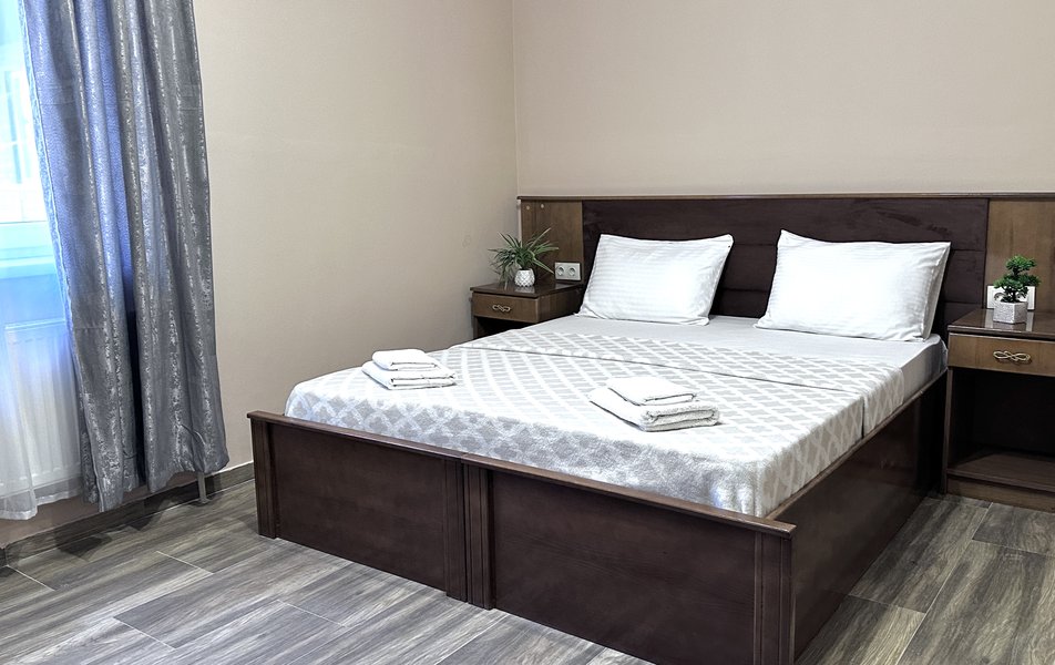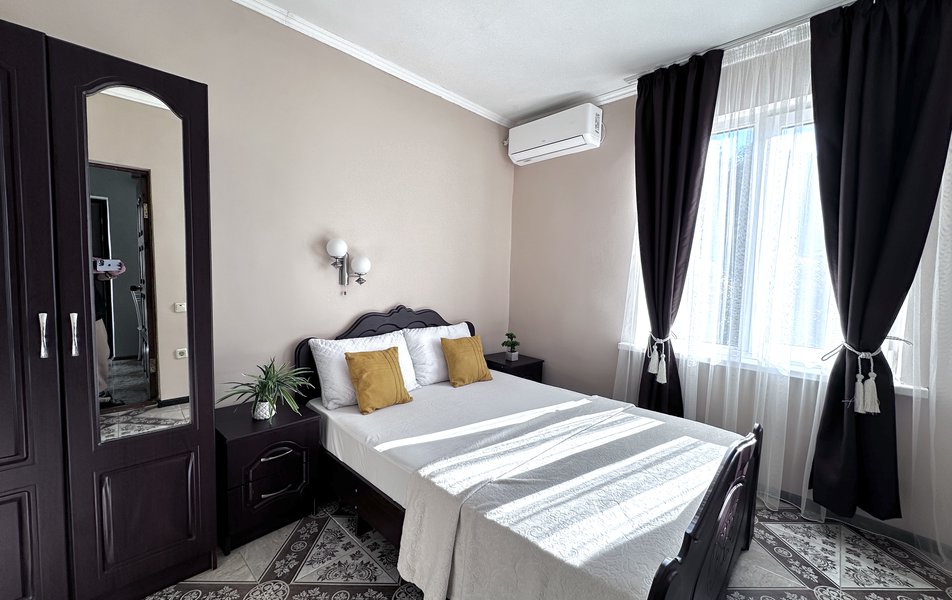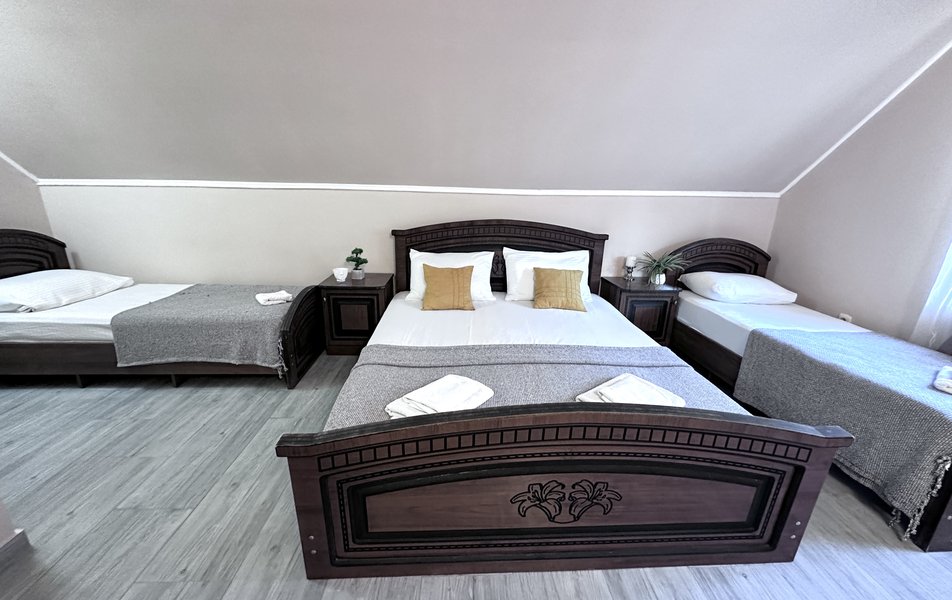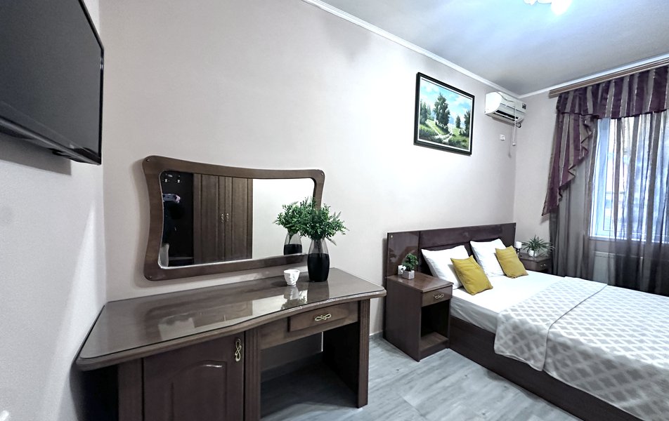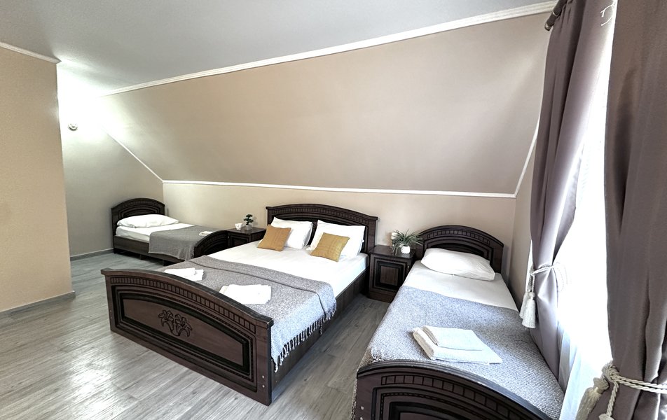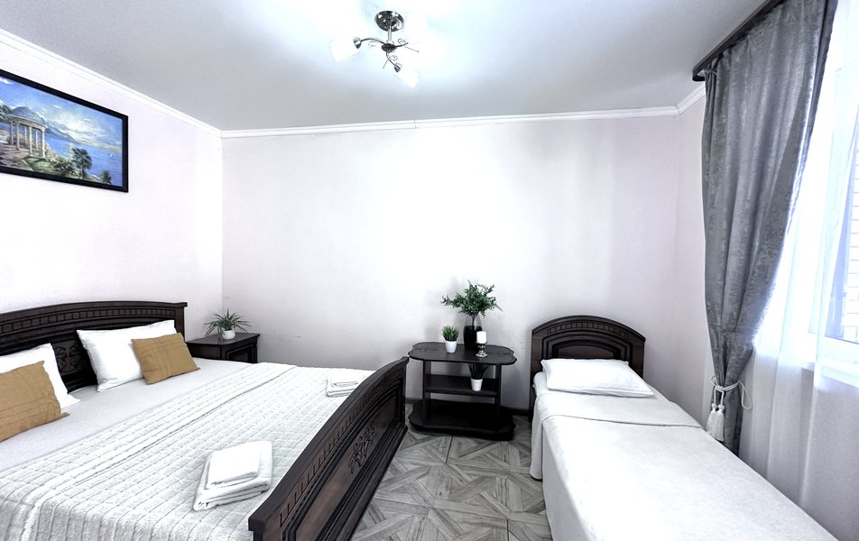 Отдыхали 2 взрослых и 2 ребёнка, на 7 ночей. Бронировали номер в коттедже, кажется семейный. Администратор приветливая и вежливая девушка. Номер просторный: при входе холл большой, стоит стол и 4 стула, так же холодильник с морозильной камерой. Далее две комнаты. В детской шкаф без полок, поэтому он был просто бесполезный. Повесить на 5 вешалок все детские вещи невозможно, поэтому шкафом в детской пользоваться не смогли. Так же есть собственный балкон, стол и два стула. В каждой комнате по телевизору, но показывает всего 3 канала, поэтому пользоваться ими к сожалению не удалось. Ремонт, конечно, старый. Прям вернулись в начало 2000ых. Свет в комнате не работал, пользовались ночником, он яркий и спасал ситуацию. Комнаты предполагалась закрывались на замки и были даже ключи от двух комнат, но по факту замки не работают. Кстати ключ от номера у нас забрала женщина в первый же день приезда, сделать копию для персонала и до конца отдыха не вернули, то есть в наше отсутствие наше жильё всегда было открыто. И самое ужасное, что во время отъезда с нас спрашивали эти ключи и НЕ верили нам, что кто-то из сотрудников забрал у нас, чтобы копию сделать, т.к. до этого их кто-то потерял. Обязательно берите с собой туалетку, мыло, половую тряпку, средство для мытья посуды, если планируете готовить и питаться самостоятельно. За неделю не меняли бельё, полотенца и не убирались. Далее по территории: она маленькая, но всё в зелени - это радует. Есть бассейн, но он холодный и глубокий. До моря минут 10-15 кто как ходит) нас не напрягала дорога. Кстати, на территории висит реклама экскурсий, ни в коем случае не берите там, нас обманули!!! Обещали поездку на 33 водопада чайные плантации купание в горной реке. По факту возили по дегустациям каньон прохладный, то есть вместо 3ех локаций отвезли только в одну! Когда мы написали этому Артёму, почему мы бронировали одну экскурсию, а получили совершенно другую, он ответил "уточню" и просто пропал. Это мошенники! Не знаю как они могли у себя на территории отеля повесить рекламу людей, которые обманывают туристов!