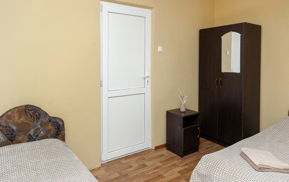 Эконом 2-местный Количество комнат: 1-комнатный Тип номера: Эконом Вид из номера: на двор Кол-во номеров: 2 Кол-во основных мест: 3 Площадь (кв. м): 15 Мебель: зеркало, кровати односпальные, стол, стулья, шкаф Оборудование: вентилятор, кондиционер, телевизор, холодильник, чайник Санузел на блок: с душем, туалетные принадлежности Сервис: Wi-Fi бесплатно, смена полотенец, смена постельного белья, уборка номера