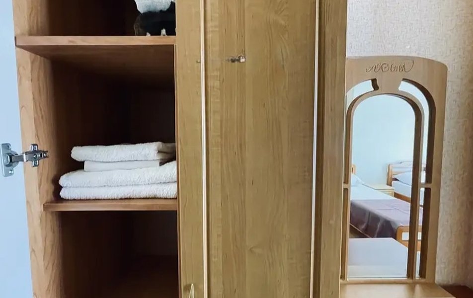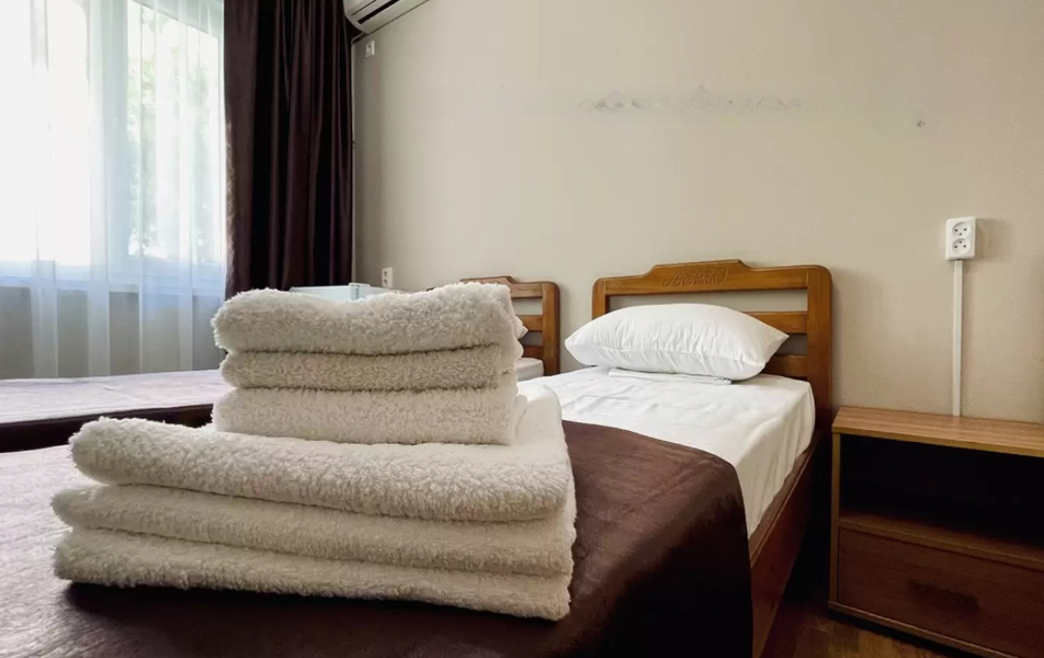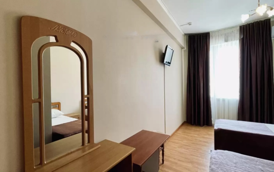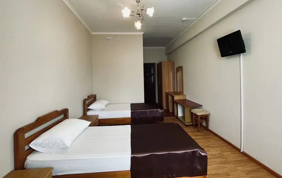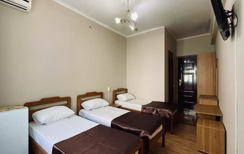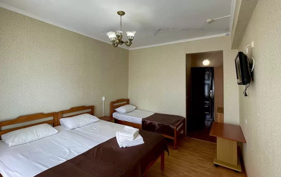 Стандартный 3-местный Количество комнат: 1-комнатный Тип номера: Стандартный Дополнительное место: раскладушка Кол-во доп. мест: 1 (0-7 лет) Кол-во номеров: 45 Кол-во основных мест: 3 Площадь (кв. м): 20 Балкон: не во всех номерах, с мебелью Мебель: вешалка, зеркало, кровати односпальные: 3, прикроватные тумбочки, шкаф Оборудование: кондиционер, телевизор, холодильник Санузел: с душем (поддон), туалетные принадлежности Сервис: Wi-Fi бесплатно, смена полотенец, смена постельного белья, уборка номера