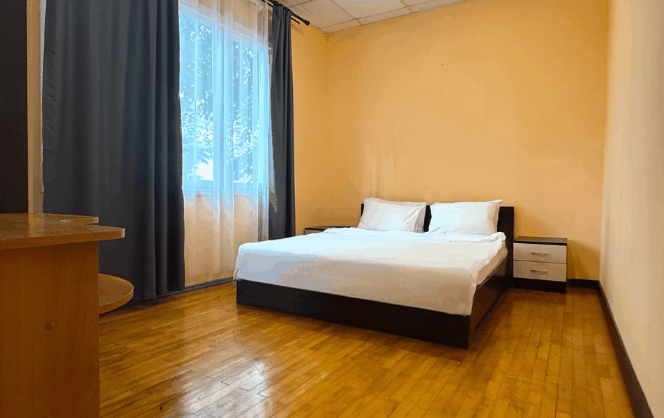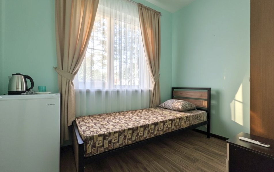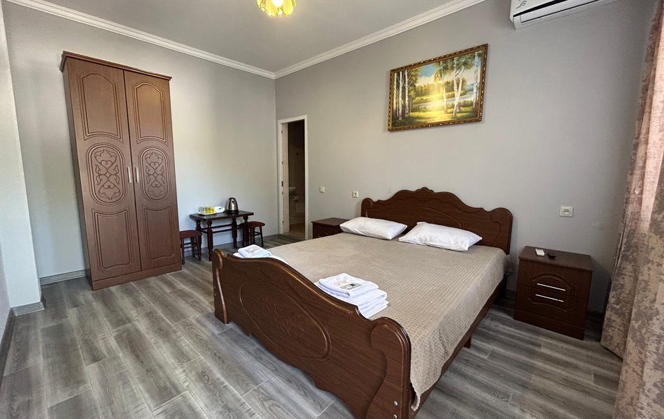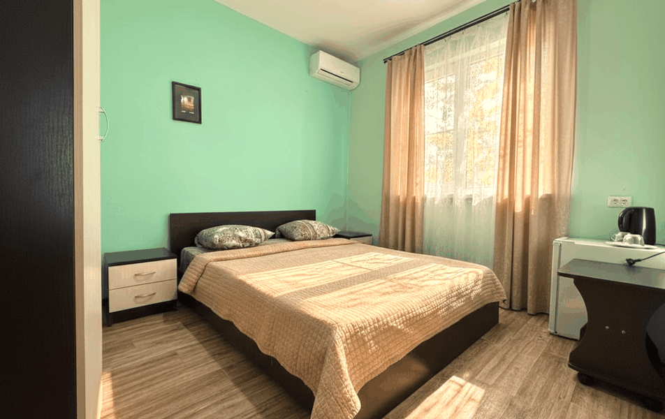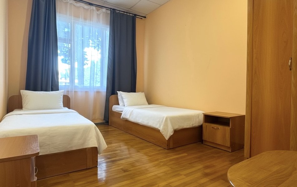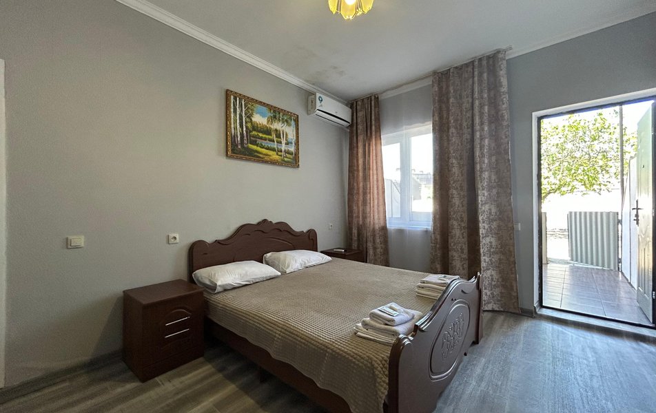 Апартаменты 4-местный 3-комнатный Количество комнат: 3-комнатный Тип номера: Апартаменты Вид из номера: на двор Кол-во доп. мест: 3 Кол-во основных мест: 4 Корпус: 8 Площадь (кв. м): 61 Этаж: 1-2 Мебель: вешалка, зеркало, кресло-кровать: 3, кровати односпальные, кровать двуспальная, прикроватные тумбочки, столик журнальный, стол обеденный, стулья, шкаф Оборудование: кондиционер, набор посуды, плита электрическая, сушилка для белья, телевизор, холодильник, электрочайник Санузел: с ванной Сервис: Wi-Fi бесплатно, смена полотенец, смена постельного белья, уборка номера