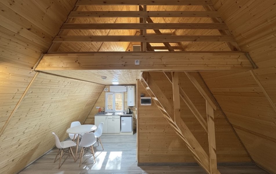 Вилла 3-местная 2-уровневая («Афрейм») Количество комнат: 1-комнатный Тип номера: Коттедж/Вилла Вид из номера: на двор Кол-во доп. мест: 1 Кол-во основных мест: 3 Корпус: вилла Площадь (кв. м): 42 Мебель: диван раскладной, комод, кресло-кровать, кровать двуспальная, стол обеденный, стулья, шкаф Оборудование: кондиционер, мини-холодильник, набор посуды, плита индукционная, телевизор ЖК, теплый пол, электрочайник Санузел: с душевой кабиной, туалетные принадлежности, фен Сервис: Wi-Fi бесплатно, смена полотенец, смена постельного белья, уборка номера Терраса: оборудована мебелью