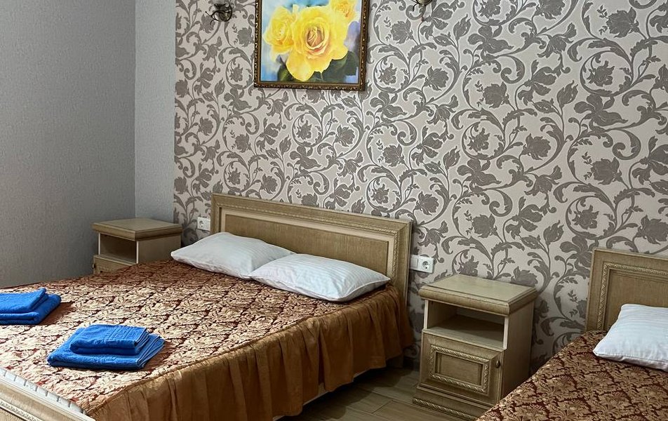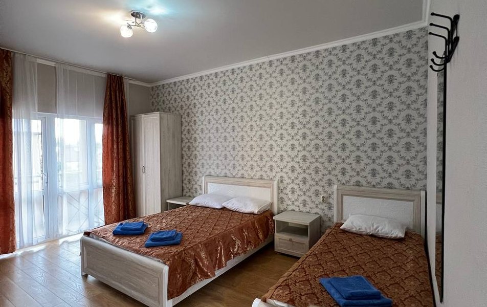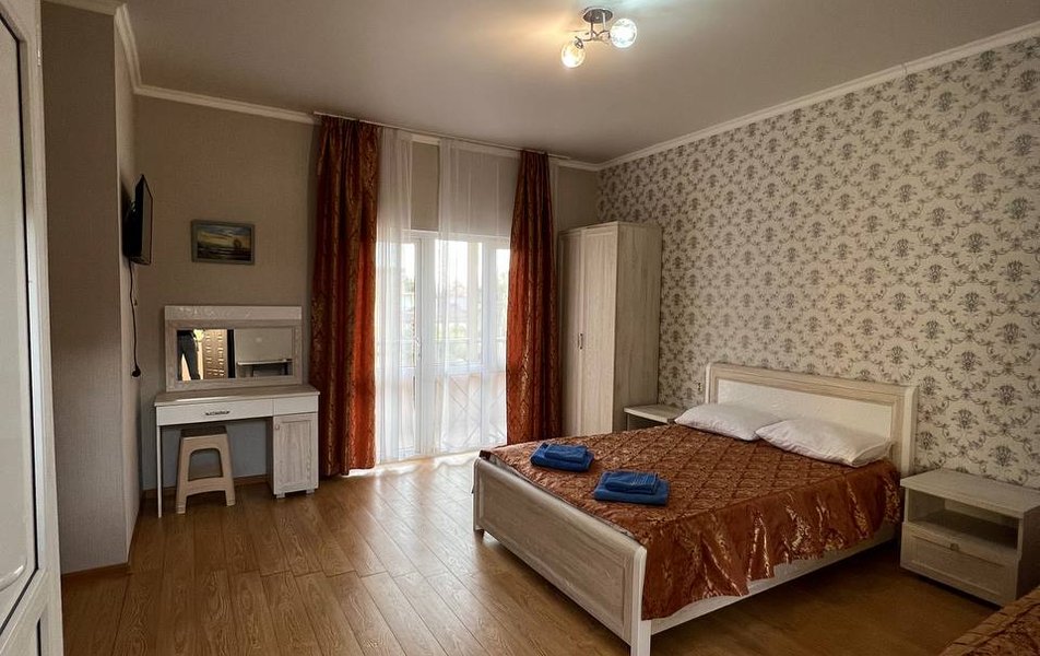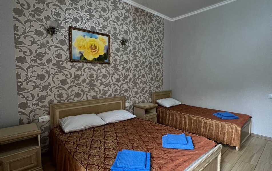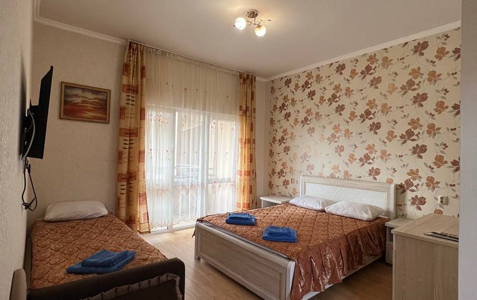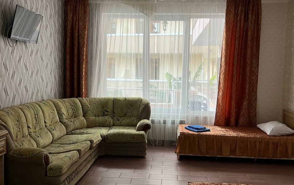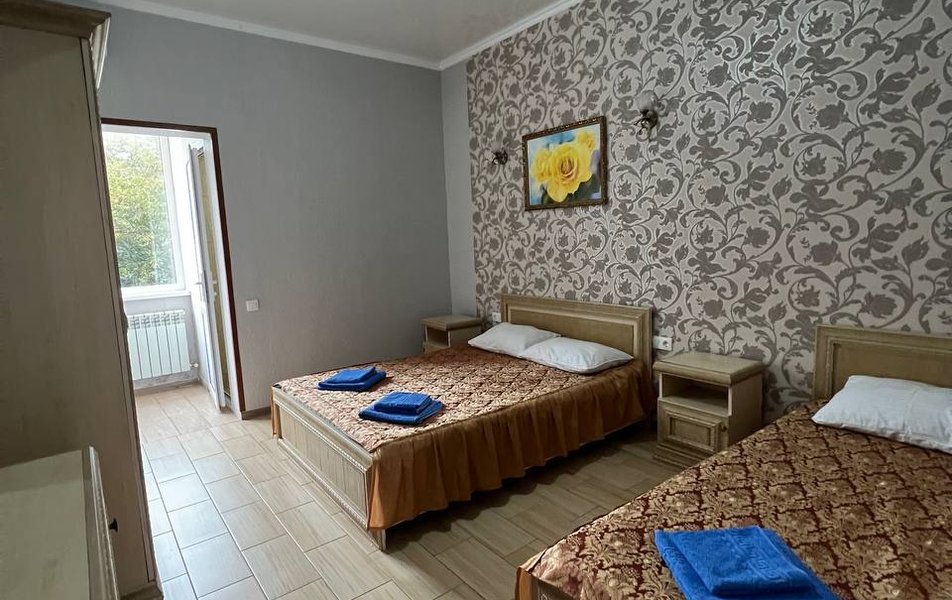 Люкс 4-местный 2-комнатный Количество комнат: 2-комнатный Тип номера: Люкс Вид из номера: частичный вид на море: на бассейн Кол-во номеров: 1 Кол-во основных мест: 4 Корпус: 1 Площадь (кв. м): 30 Балкон: с мебелью и сушилкой Мебель: диван раскладной: как основное место, зеркало, кровать двуспальная, прикроватные тумбочки, стол, стулья, шкаф Оборудование: кондиционер, телевизор, холодильник, чайный набор посуды Санузел: с душем Сервис: Wi-Fi бесплатно, room-сервис: 24 часа, смена постельного белья: 1 раз в 7 дней, уборка номера: 1 раз в 7 дней