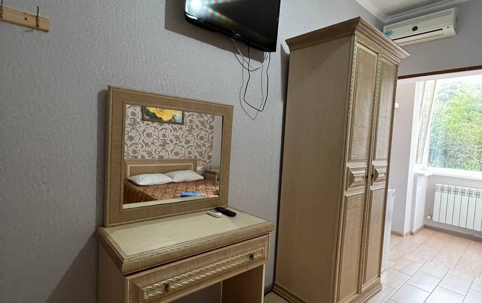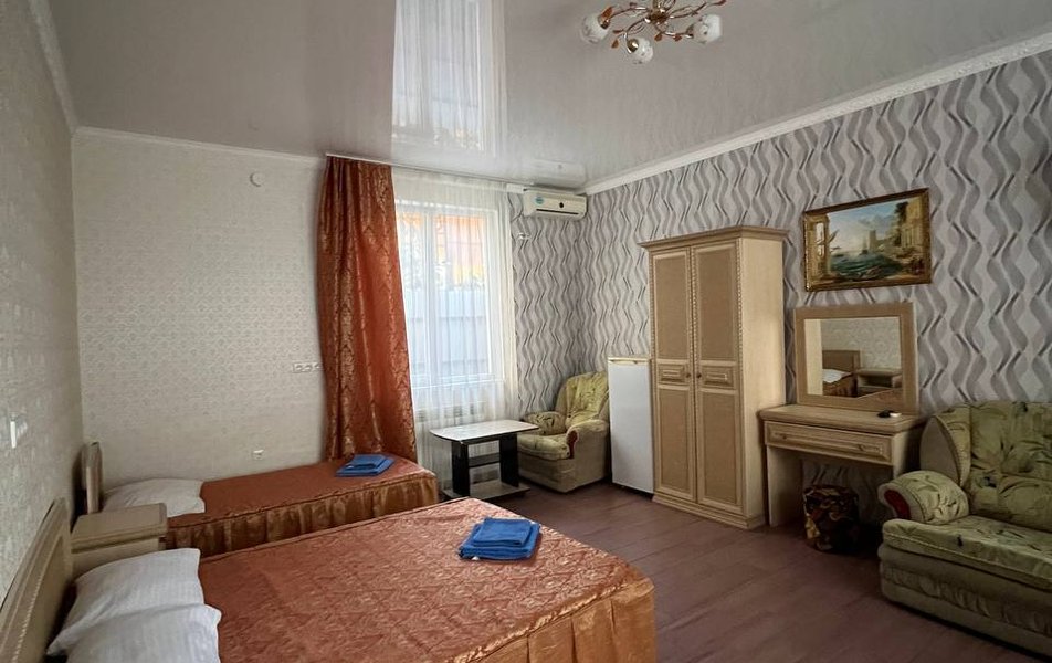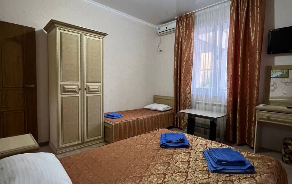 Стандартный 2-местный Количество комнат: 1-комнатный Тип номера: Стандартный Дополнительное место: кресло-кровать Вид из номера: на двор Кол-во доп. мест: 1 Кол-во номеров: 2 Кол-во основных мест: 2 Корпус: 2 Площадь (кв. м): 14 Мебель: зеркало, кресло-кровать, кровать двуспальная, прикроватные тумбочки, шкаф Оборудование: кондиционер, мини-холодильник, телевизор Санузел: с душем Сервис: Wi-Fi бесплатно, room-сервис: 24 часа, смена постельного белья: 1 раз в 7 дней, уборка номера: 1 раз в 7 дней