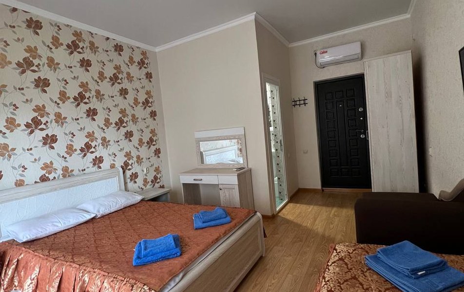 Стандартный 2-местный Улучшенный (DBL) Количество комнат: 1-комнатный Тип номера: Стандартный Дополнительное место: кровать Вид из номера: на бассейн Кол-во доп. мест: 1 Кол-во номеров: 1 Кол-во основных мест: 2 Корпус: 1 Площадь (кв. м): 20 Мебель: зеркало, кровать двуспальная, прикроватные тумбочки, шкаф Оборудование: кондиционер, мини-холодильник, телевизор Санузел: с душем Сервис: Wi-Fi бесплатно, room-сервис: 24 часа, смена постельного белья: 1 раз в 7 дней, уборка номера: 1 раз в 7 дней