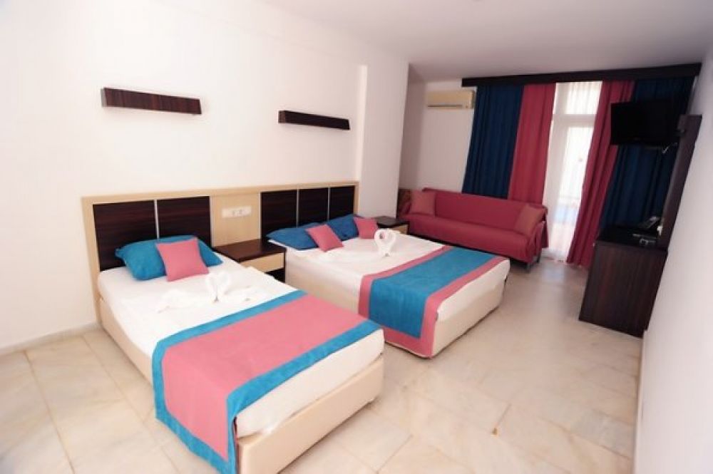 Семейный номер с видом на море укомплектован двуспальной и односпальной кроватями, диваном. К услугам гостей кондиционер, телевизор, телефон, мини-бар. Ванная комната с душем, феном и туалетно-косметическими принадлежностями.